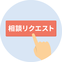 ①専用サイトへアクセスいただき、相談リクエストフォームをクリック。